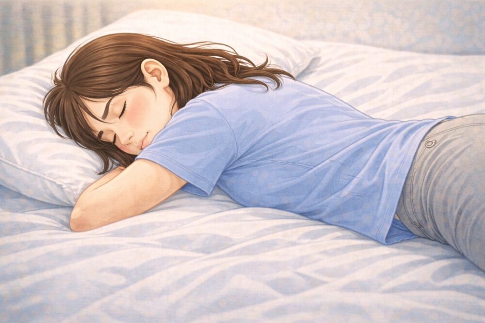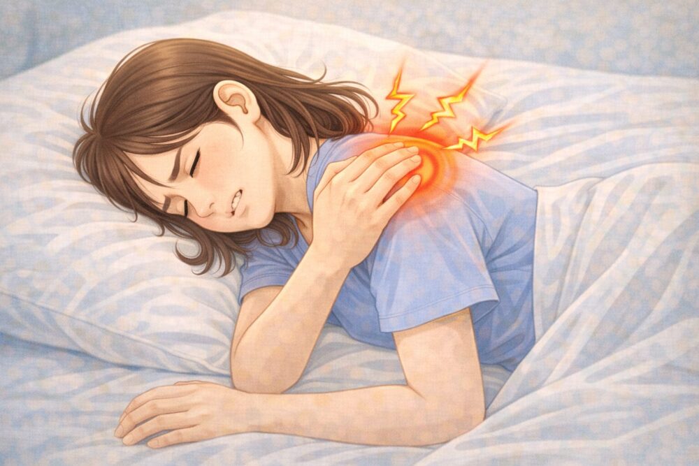 横向き寝は、多くの人が好む寝姿勢の一つですが、実は肩こりの原因になりやすい寝方でもあります。特に問題となるのは、下になっている肩への負担です。体の重みが一点に集中することで、肩関節や肩周りの筋肉が長時間圧迫され、血行不良や神経の圧迫を引き起こしやすくなります。