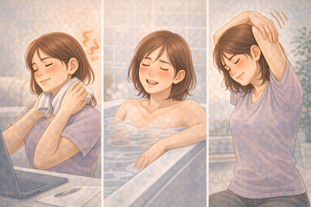 更年期に感じるつらい肩こりは、日々の生活習慣を見直すことで緩和できる可能性があります。自宅で手軽に実践できる対処方法をいくつかご紹介します。