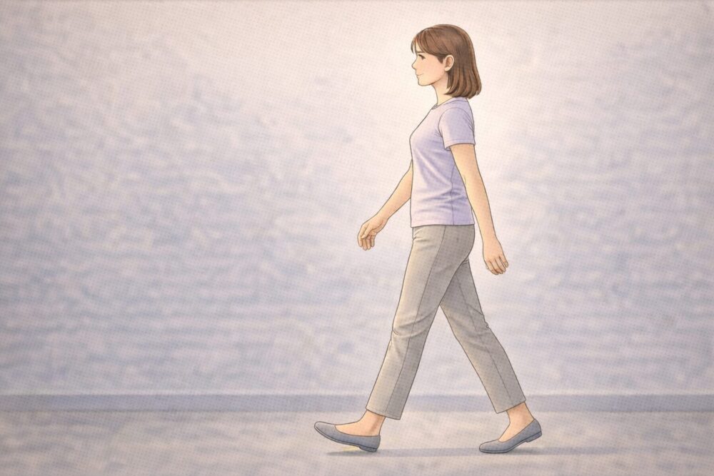 歩く際も、脊柱への負担を減らすために意識すべき点があります。目線を遠くに向け、顎を軽く引き、背筋を伸ばして歩きましょう。腕を軽く振り、かかとから着地してつま先で地面を蹴り出すようにすると、体全体のバランスが整いやすくなります。