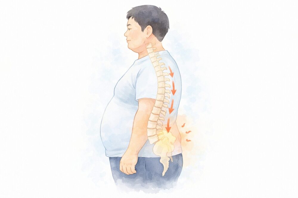 肥満が脊柱に与える具体的な負担と、それがどのように姿勢を悪化させるのかを詳しく見ていきましょう。